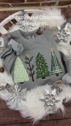 Christmas Tree Applique Cozy Sweatshirt or T-Shirt | 4 Festive Embroidered Tree Designs | Holiday Shirt | Comfort Colors Tee -Gift Idea